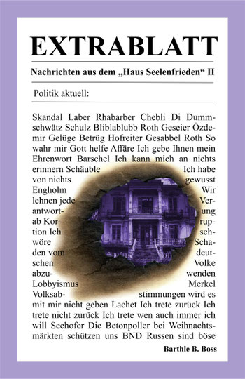 Hier ist der sehnsüchtig erwartete zweite Teil der Nachrichten aus dem „Haus Seelenfrieden“. Politik und Medien treiben es bunt? Professor Dr. Dr. Doom, Chef der „Haus Seelenfrieden“-Nachrichten treibt es bunter. Die satirischen Nachrichten aus dem „Haus Seelenfrieden“ treffen mit dem Hammer auf den Daumen politischer und medialer Unverfrorenheit, dass die Reichstags-Balken nur so wackeln.